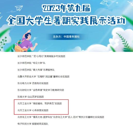 近日,由中国青年报组织开展的2023年第九届全国大学生暑期实践展示活动评选结果揭晓,beat365官网信息学院“缘起福地·筑梦典范”实践团和文法学院“心系故里”实践团成功入选全国大学生暑期实践团队TOP100,这两支团队还获评2023年“青年服务国家”首都大学生社会实践优秀团队。