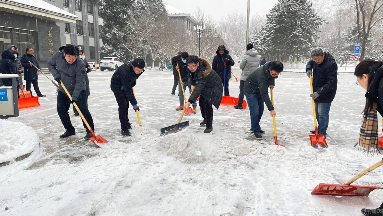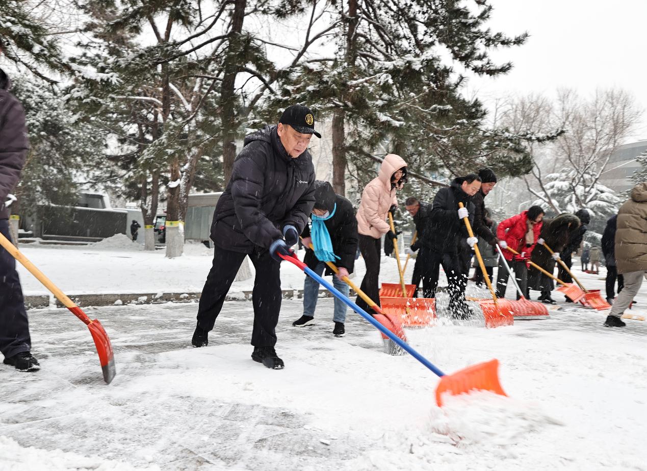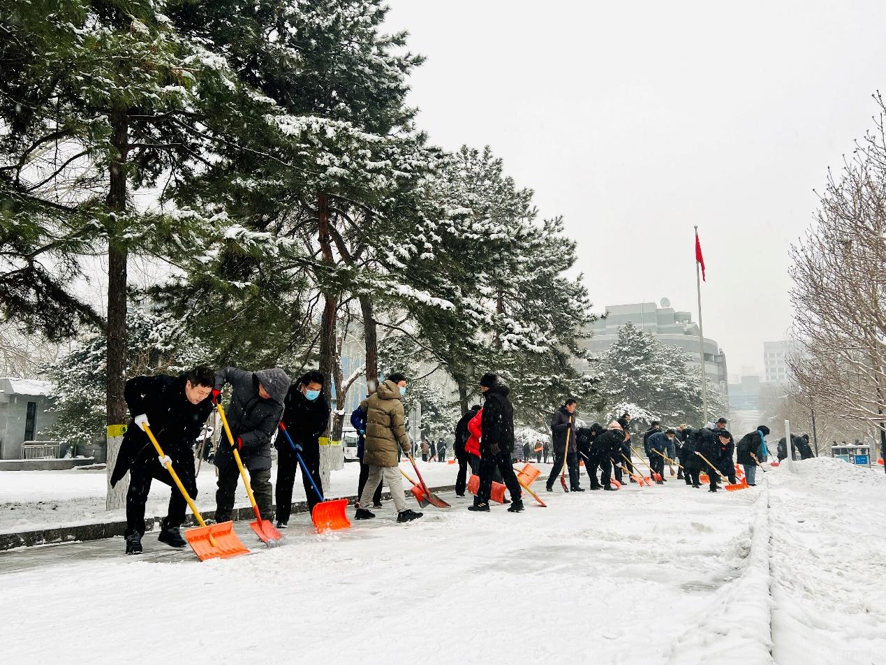 广大干部和教职工坚守岗位,落实工作责任。安稳部门强化进出校管理,做好交通疏导、巡逻值勤;后勤职工第一时间组织开展铲冰扫雪,做好物资保供、供暖、医疗等,践行“大后勤”的使命担当;学工部门、各学院密切关注师生状况,做好宣传提醒,及时回应师生关切。