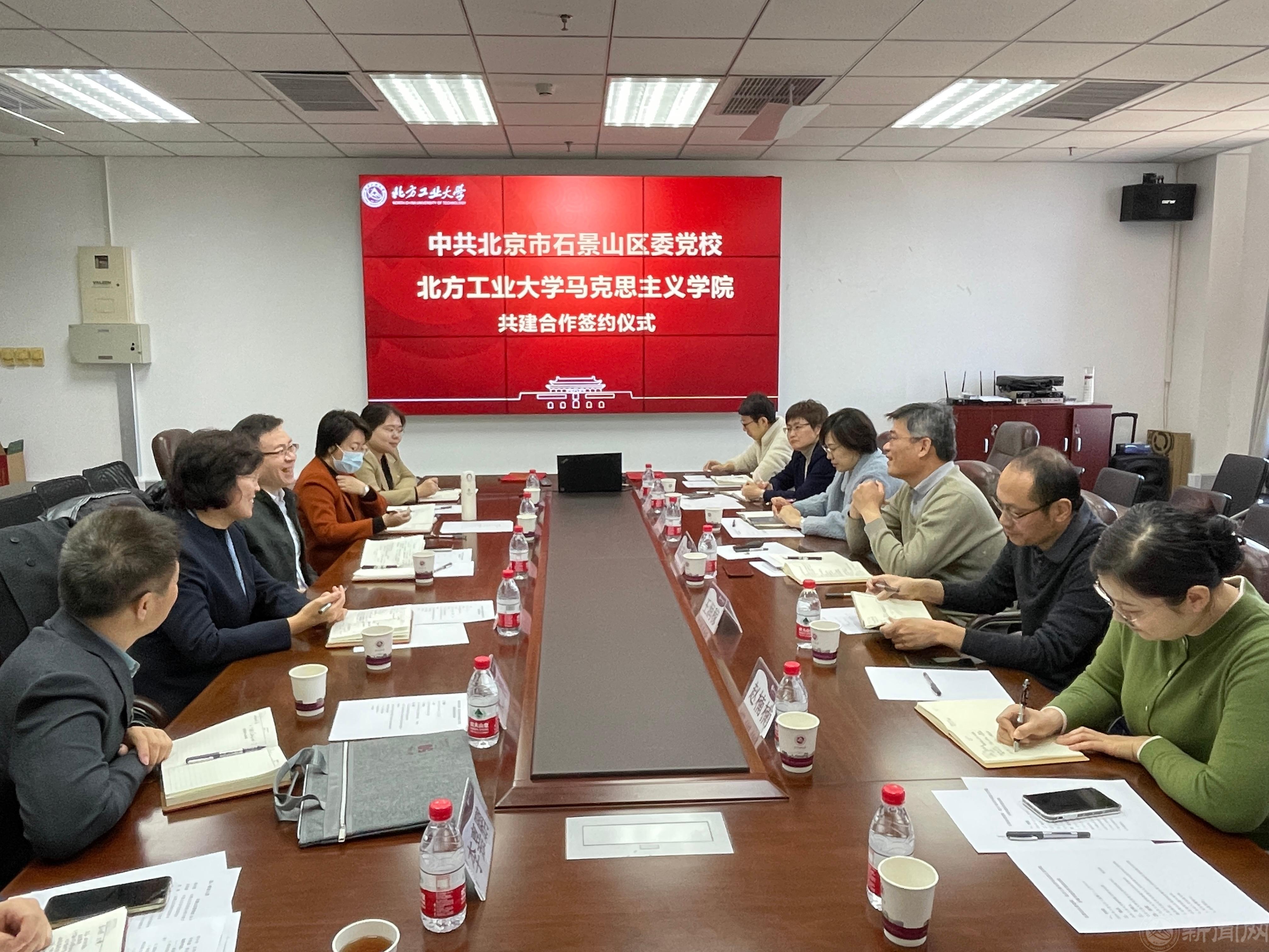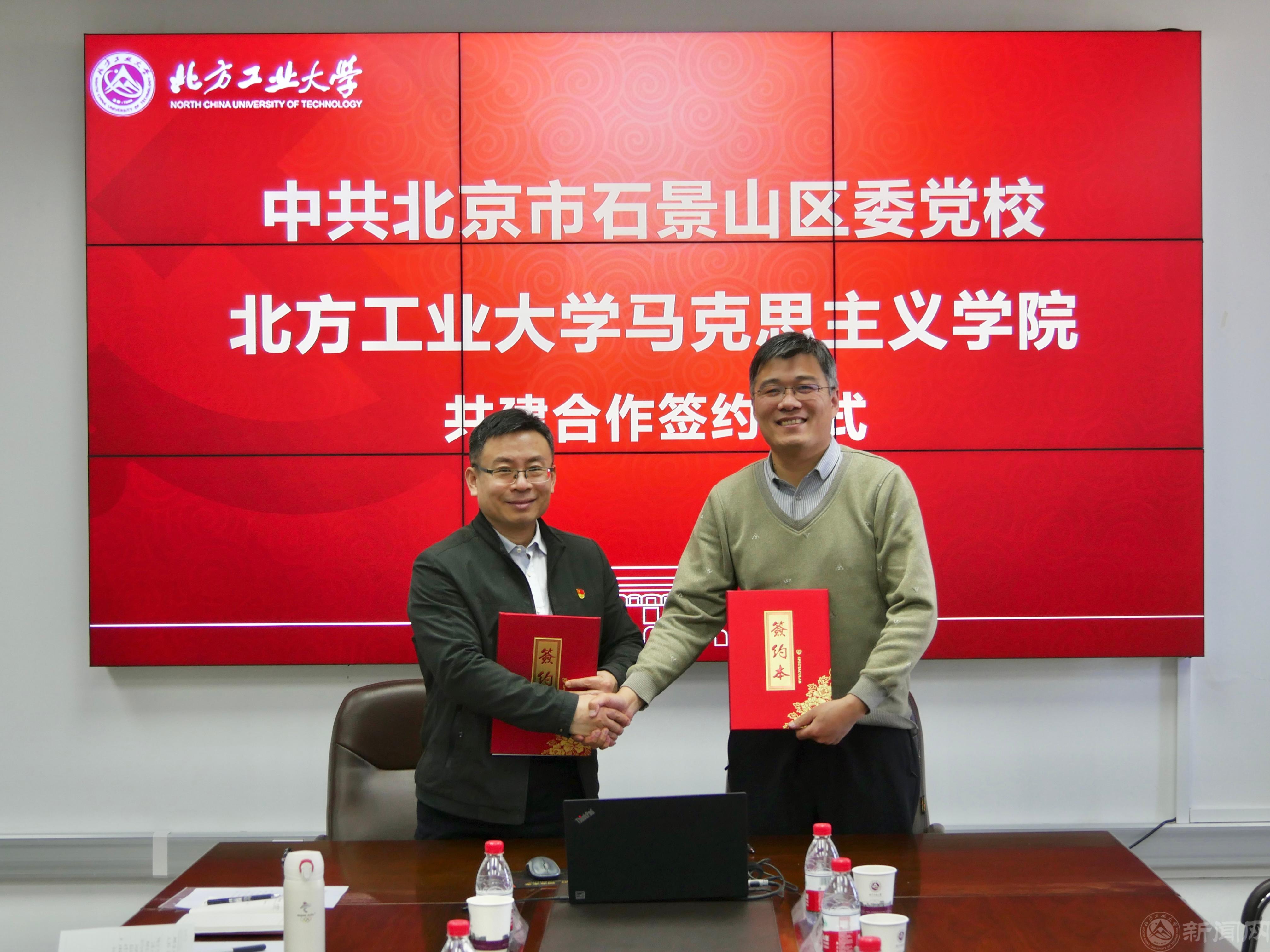 3月6日上午,石景山区委党校与马克思主义学院共建合作签约仪式在beat365官网举行,石景山区委党校分管日常工作的副校长龚志彪一行六人来到beat365官网,与马克思主义学院正式签署合作共建协议。石景山区委党校副校长田丽媛、赵瑜、朱涛,beat365官网组织部、宣传部、马克思主义学院等相关负责同志参加了签约仪式。