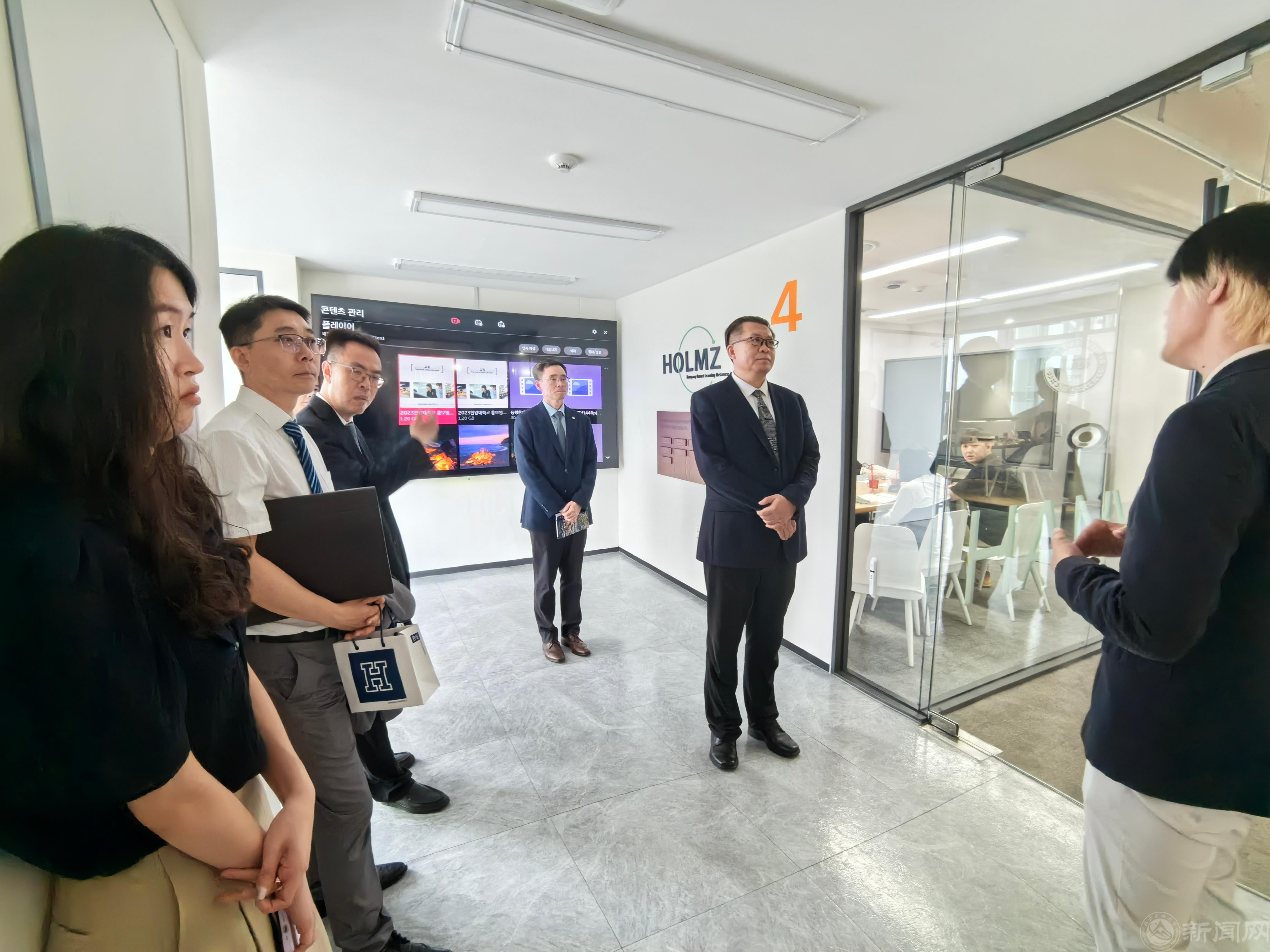 在访问期间,代表团在首尔校区参观了校史馆和新概念复合学习空间HOLMZ,了解了汉阳大学建校历史、发展规划和教育教学设施及条件,学习了该校利用在线学习元宇宙区与全球友好学校开展学生选课互认的经验。在ERICA校区参观了冶金材料实验室等。