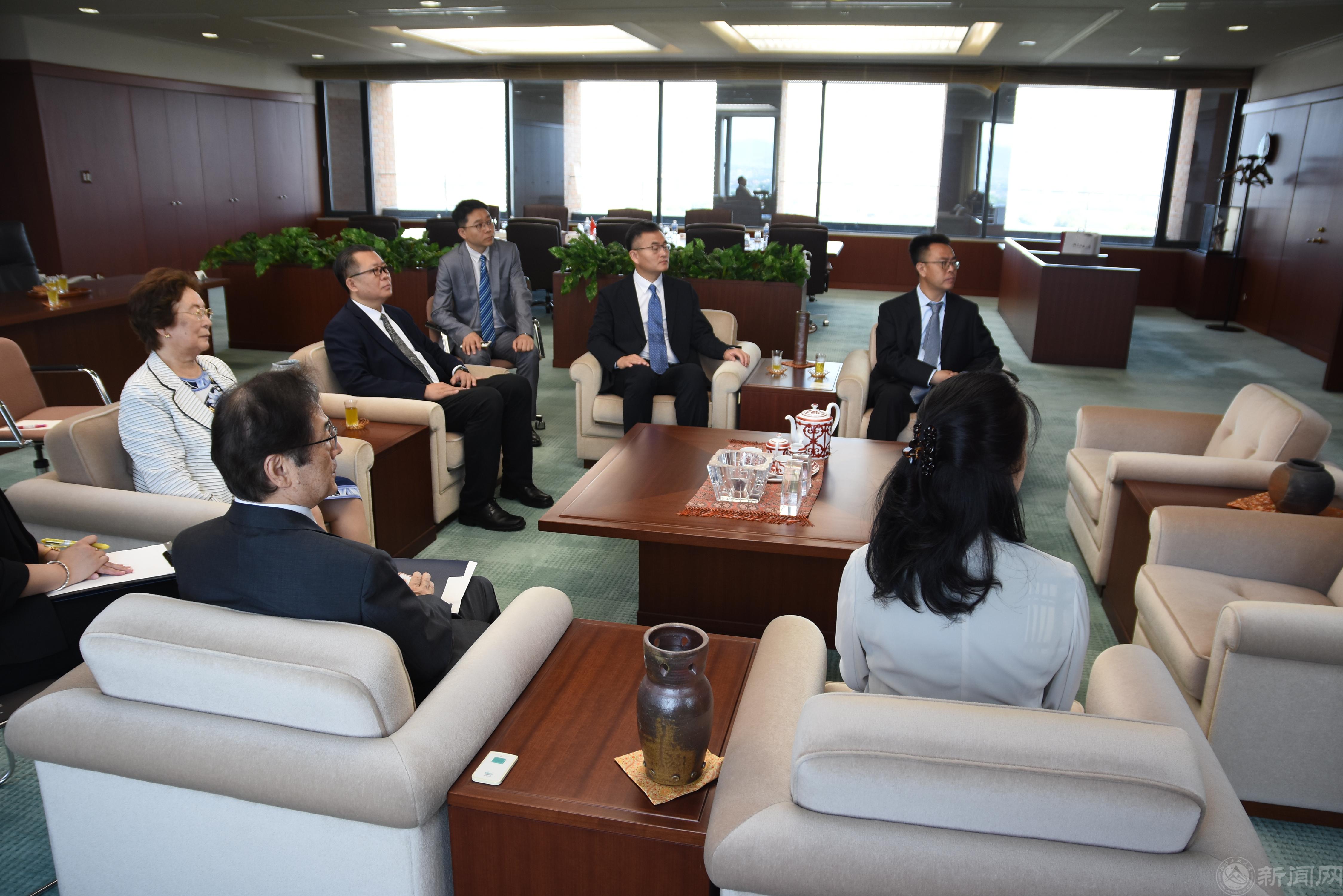 代表团访问了拓殖大学文京校区,与该校理事长冈户巧、校长铃木昭一、副校长井上治等进行了亲切会谈,并签署了新版校际合作备忘录。