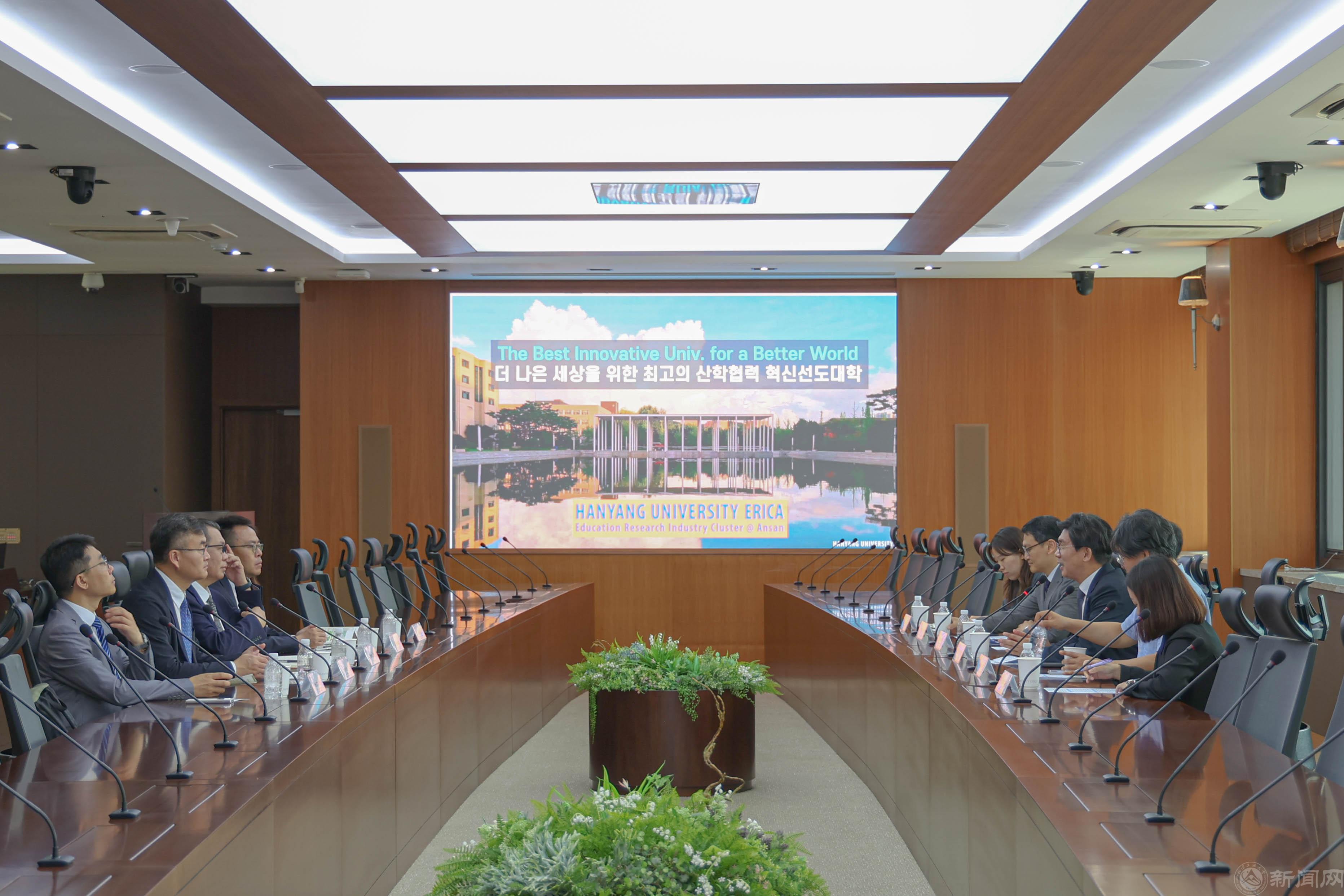 代表团访问了汉阳大学首尔校区及ERICA校区,同该校校长Ki-Jeong Lee,首尔校区国际事务副校长 Hansun Kim、ERICA校区行政副校长Dong-Hyun Baek、ERICA校区国际事务副校长Bongyoung Yoo等见面座谈,并签署了新版校际合作协议。