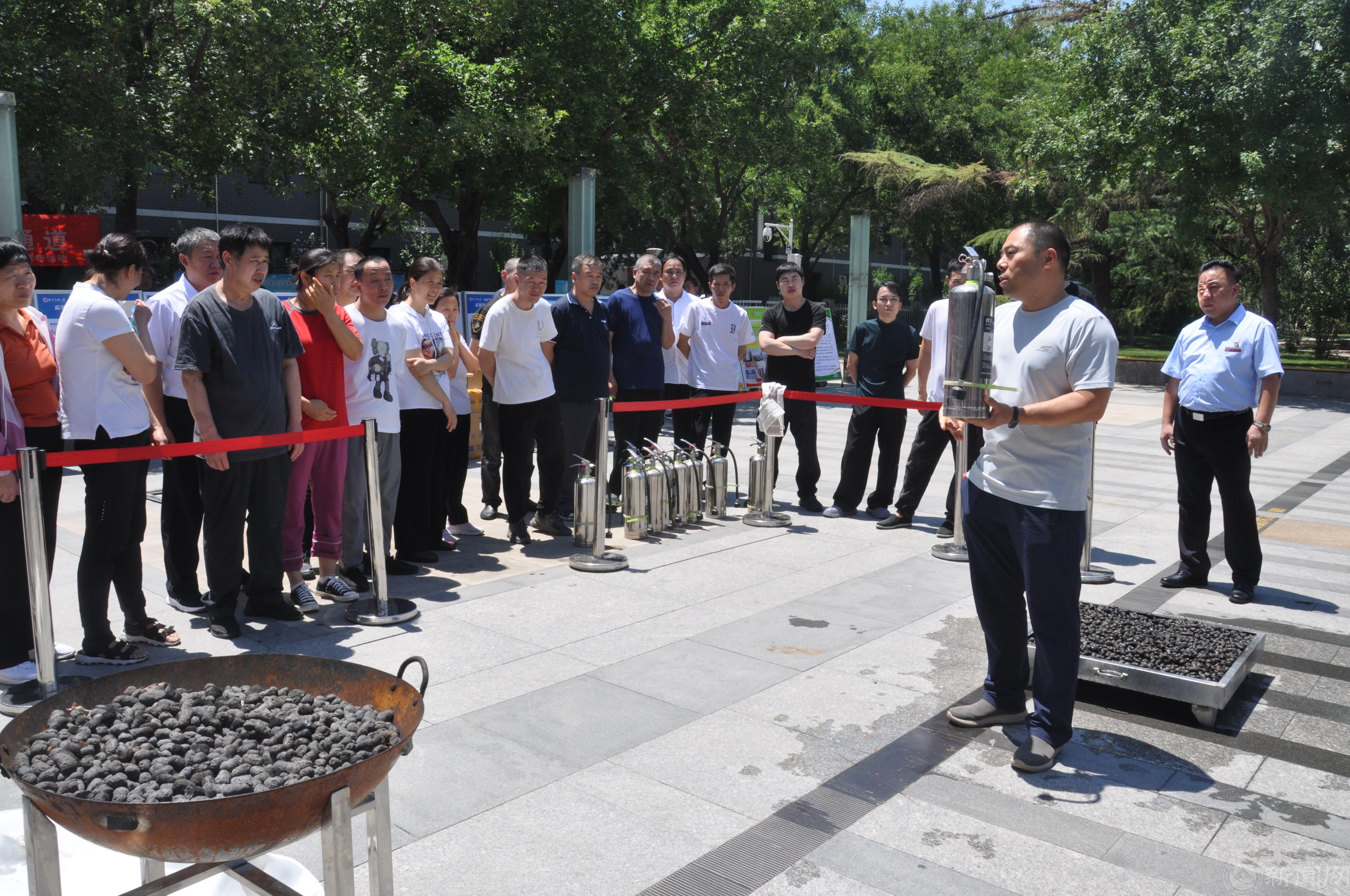 现场开展了消防演练。安稳处老师对在场的师生和员工进行了灭火器使用要点的讲解。要求操作者距离着火点2米远,拔掉安全销,喷嘴对准火苗根部按下把手,扫射火源直至火完全熄灭。随后,大家踊跃参与实践操作,掌握灭火技能,提升应急能力。