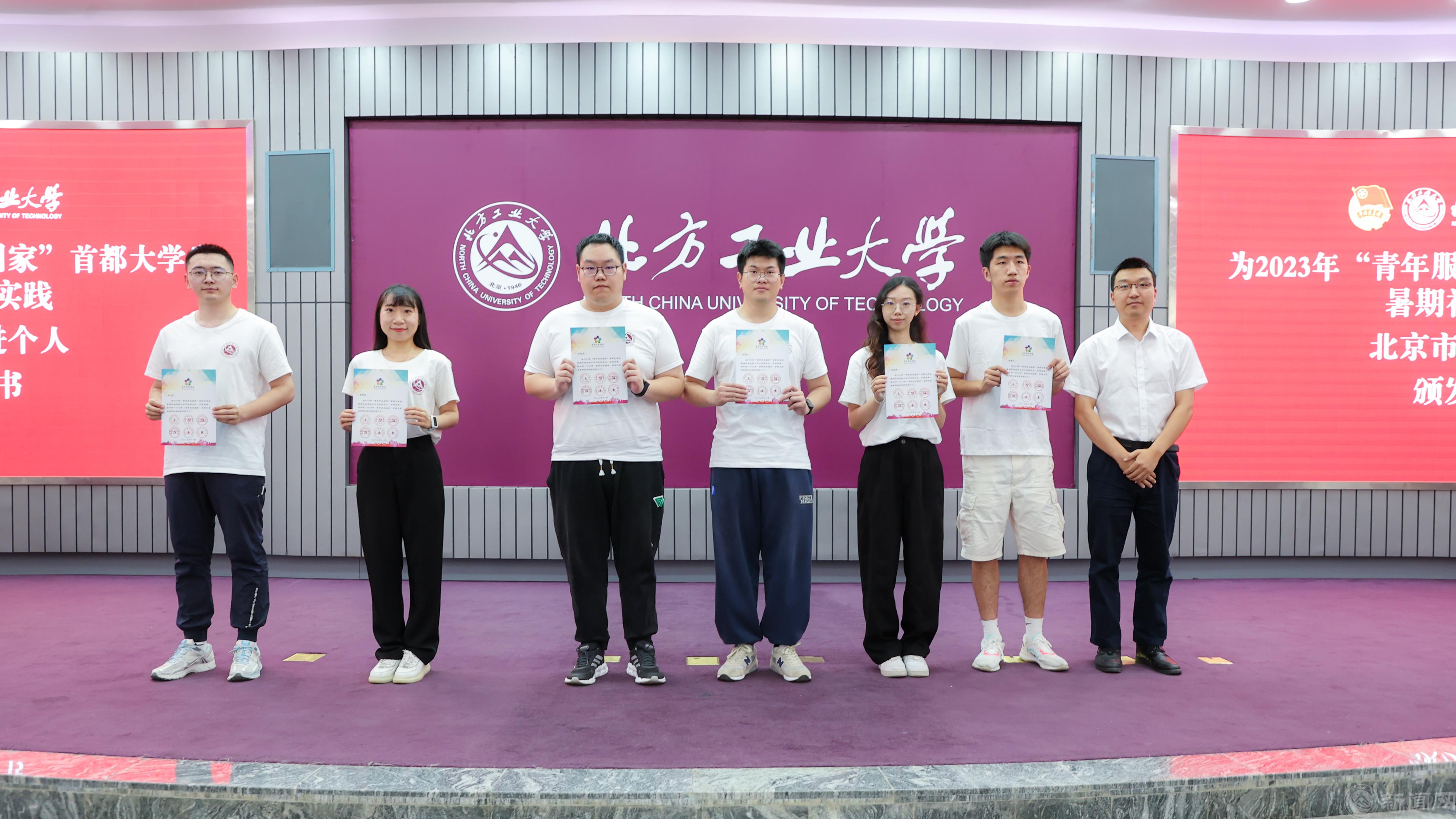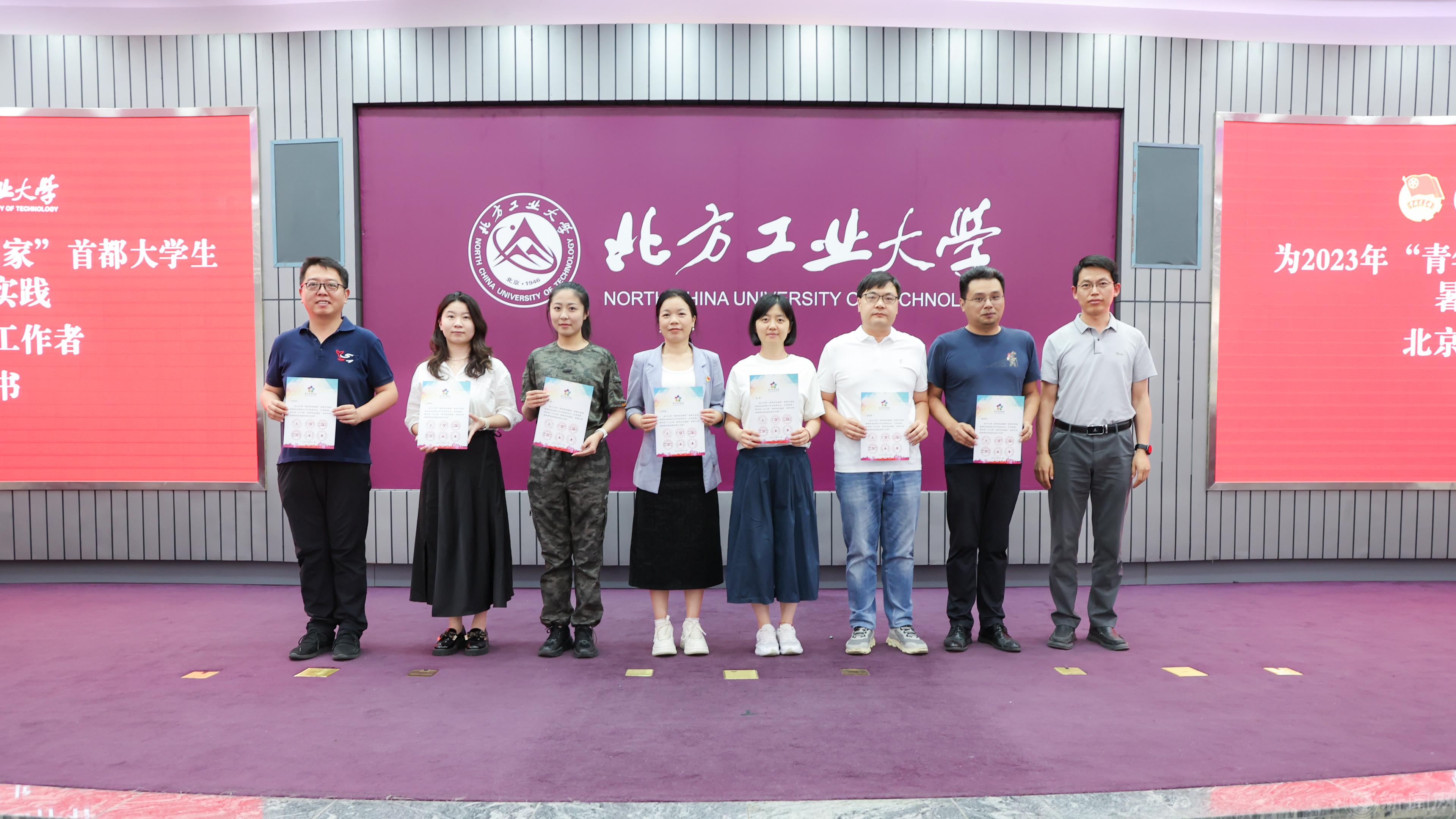 2023年beat365官网共有10支实践团队、7名教师和6名同学分别荣获“青年服务国家”首都大学生暑期社会实践北京市优秀团队、先进工作者、先进个人,与会领导为获奖团队和个人颁发了荣誉证书。杨超介绍了beat365官网2024年大学生暑期社会实践工作的总体思路和安排,高国伟为各学院2024年大学生暑期社会实践团授旗。