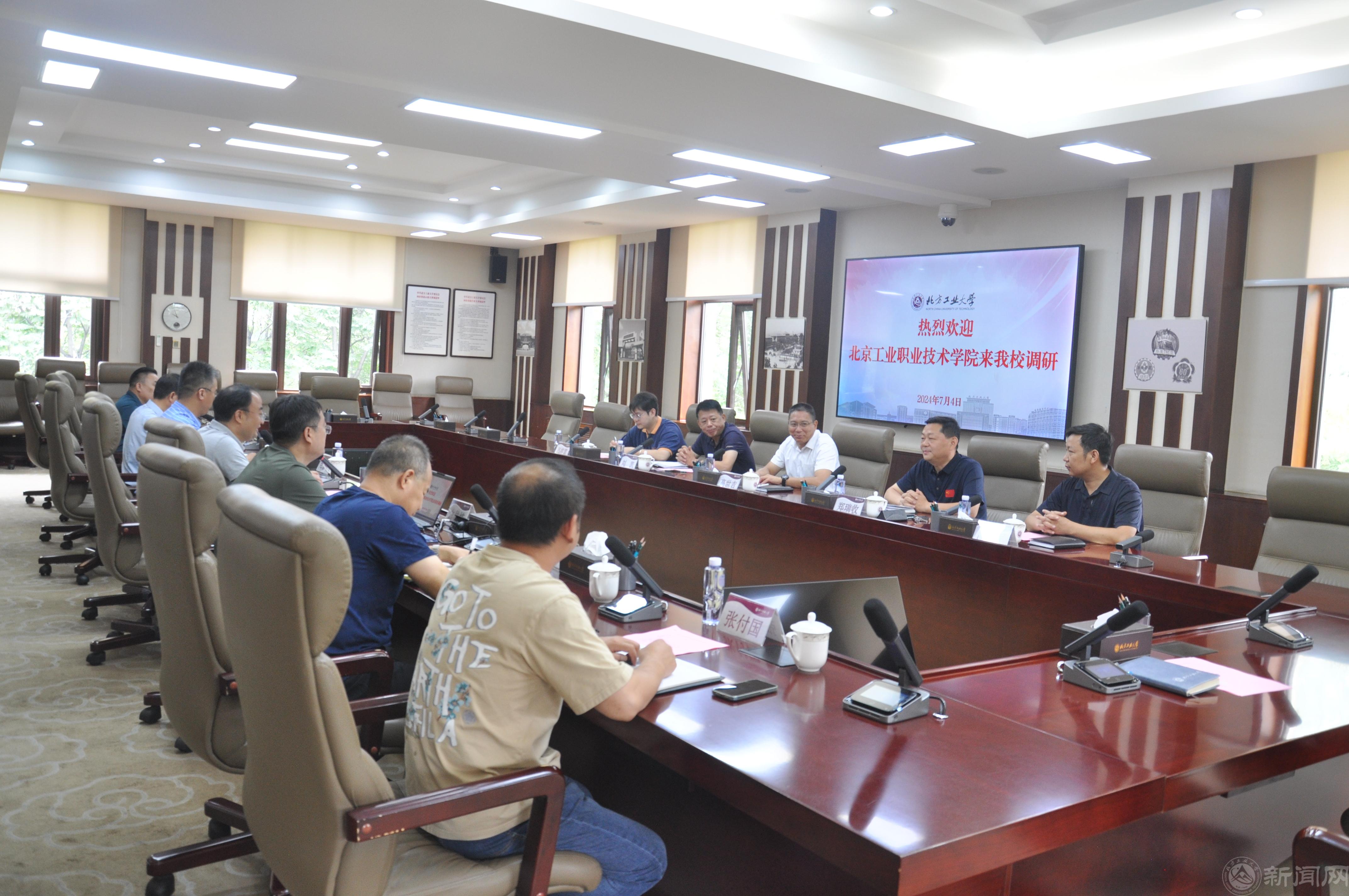7月4日上午,北京工业职业技术学院副院长高世吉一行来beat365官网调研,就餐饮服务保障工作进行座谈交流。beat365官网党委常委、副校长王力出席,后勤基建处等部门负责人参会。会议由后勤党委书记郑泰平主持。