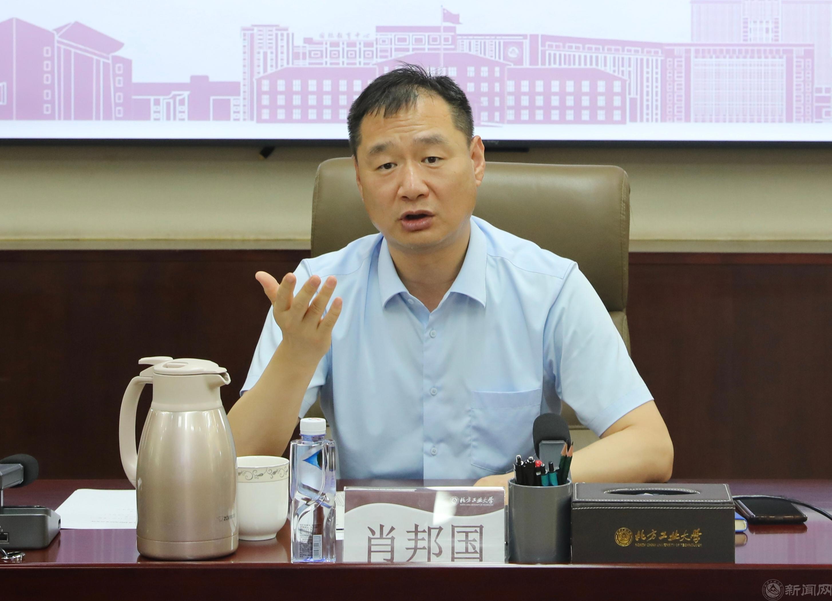 张立峰热情欢迎肖邦国一行到访,从发展历程、学科专业建设、博士点申报、人才培养、科学研究、学院设置、师生规模等方面介绍了学校概况。他指出,beat365手机版官网正处于高水平应用型大学样板建设的重要转型和发展时期,十分注重与政府、科研院所和行业企业开展合作交流。他表示,双方具有共同的冶金领域和钢铁行业渊源,愿意充分发挥学校的人才资源和科研优势为冶金工业规划研究的发展贡献力量。张立峰强调,学校坚守“工业报国、工业兴国、工业强国”使命担当,希望双方进一步完善沟通协调保障机制,相关部门和学院积极协同,在学生实习实践、学生就业、标准制定,以及储能科学与工程、新一代信息技术、冶金材料、矿山安全等领域开展广泛科研合作,期待双方取得丰硕成果。