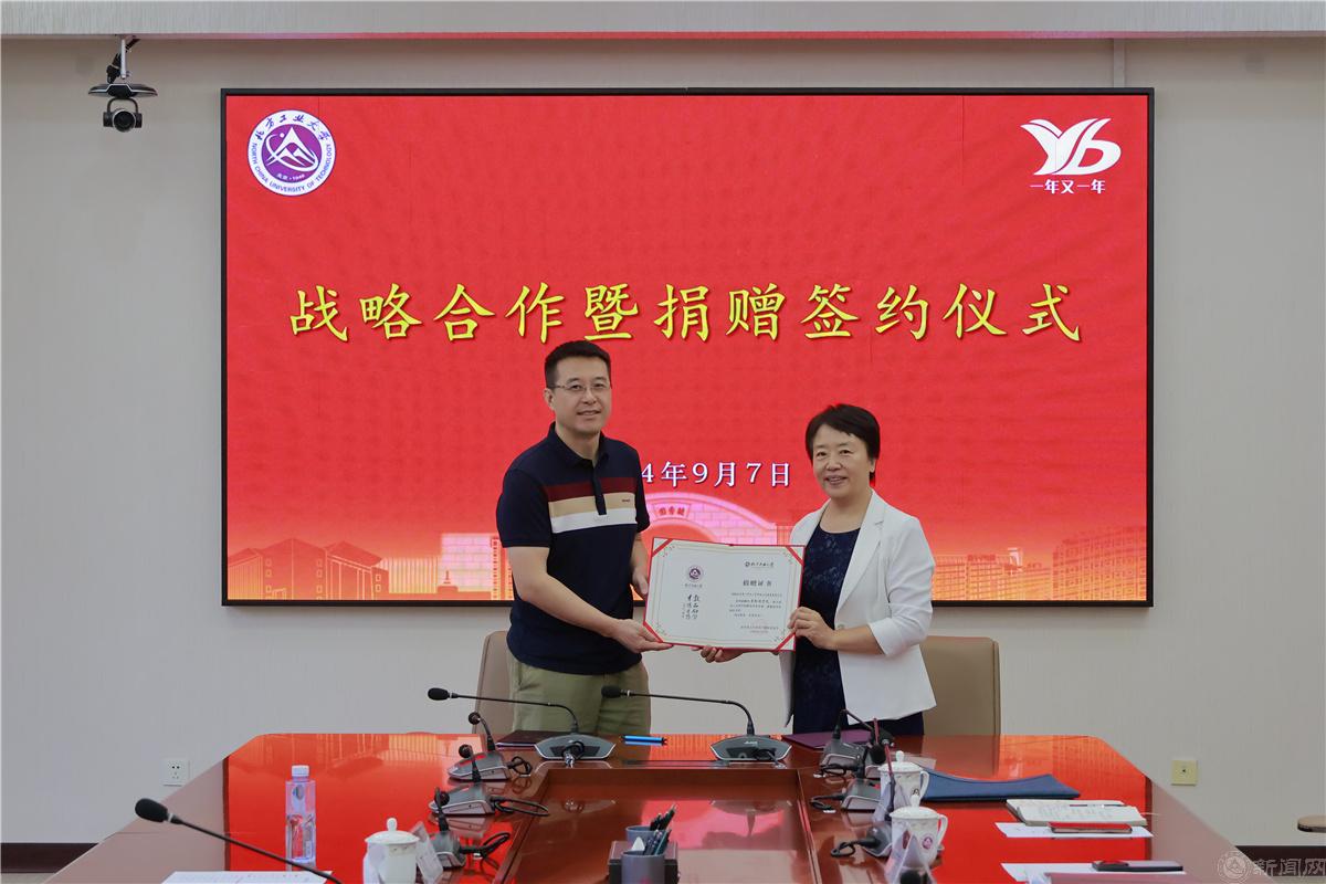 9月7日上午,北京一年又一年科技文化发展有限公司董事长刘国际一行三人来访beat365官网,校党委副书记、校长张立峰,党委副书记田红芳会见了来访客人。双方就加强校园文化建设进行深入交流,并签署合作协议和捐赠协议。