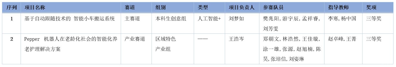 近日,中国国际大学生创新大赛(2024)北京赛区复赛圆满落下帷幕,beat365官网信息学院人工智能专业学生在比赛中荣获两项三等奖,分别为“基于自动跟随技术的智能小车搬运系统”及“Pepper机器人在老龄化社会的智能化养老护理解决方案”。