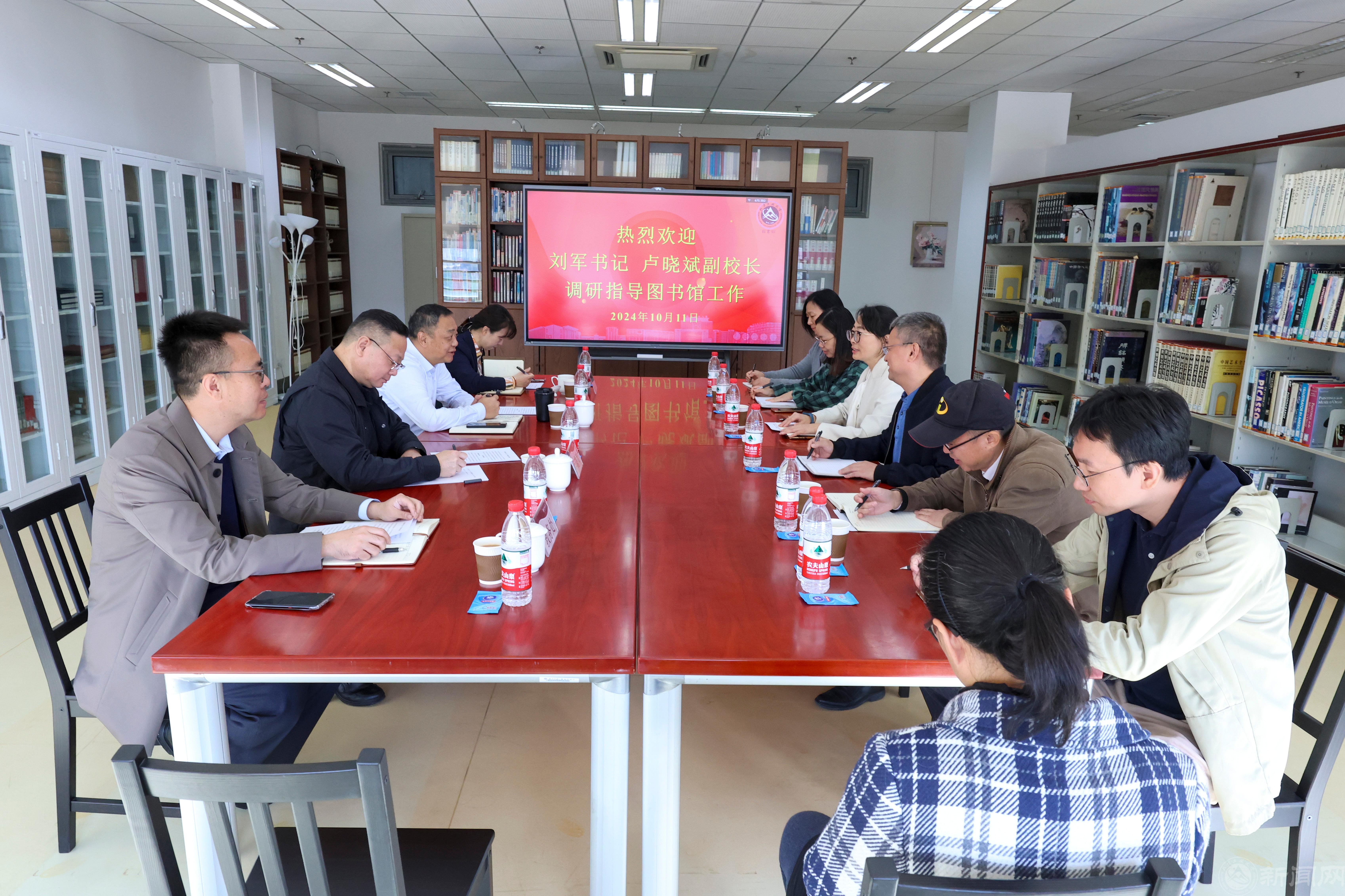 10月10日上午,校党委书记刘军、副校长卢晓斌到图书馆调研,就图书馆未来发展进行指导。