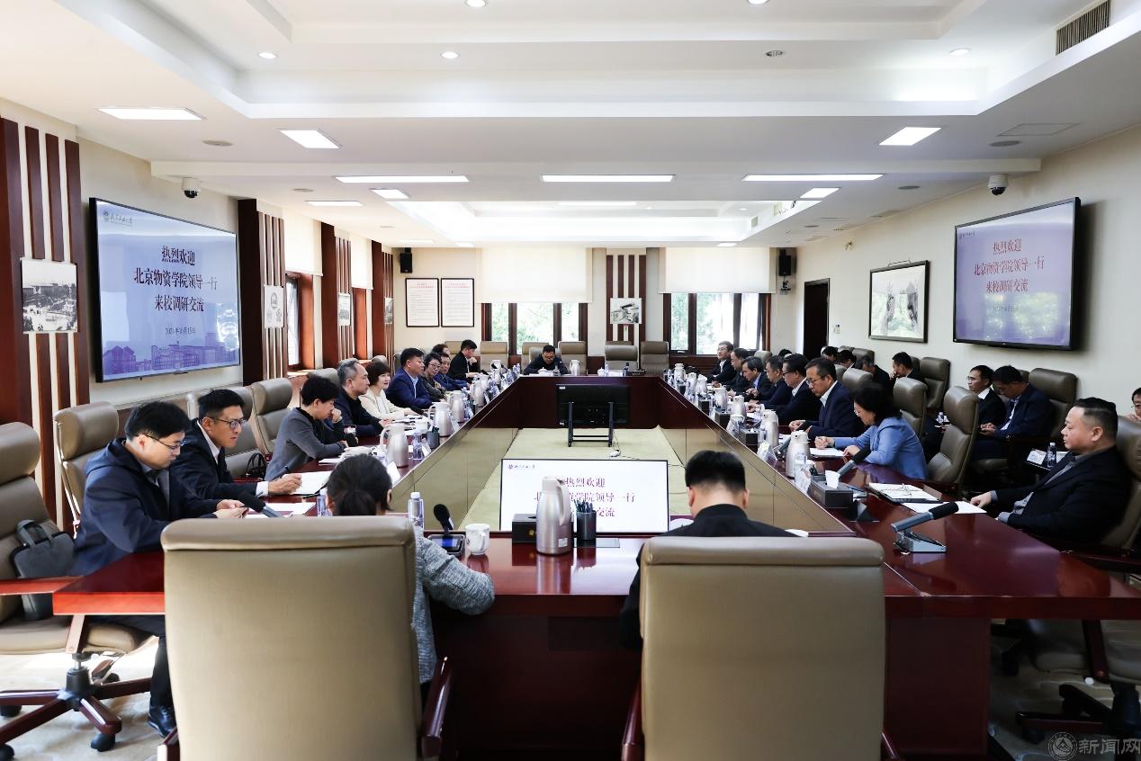 10月15日上午,北京物资学院党委书记吴惠,党委副书记、院长左敏,学院领导班子成员,相关职能部门负责人等一行14人来校调研交流,深化校际合作,共谋高质量发展。beat365官网党委书记刘军,党委副书记、校长张立峰,校领导班子成员,以及相关部门负责人热情接待来访客人,并进行座谈。beat365官网党委副书记史贞军主持座谈。