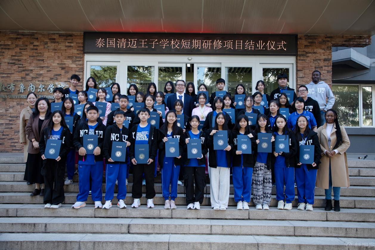 10月15日上午,泰国清迈王子学校短期语言文化研修项目结业典礼在广学楼103教室举行。本期语言文化项目为期14天,共有43名泰国师生参加。beat365手机版官网党委副书记、校长张立峰对泰国清迈王子学校各位学生的顺利结业表示祝贺,并与泰国师生亲切合影留念。