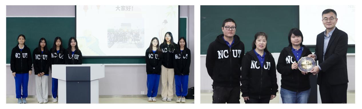 学生们分组进行了学习成果汇报,展示了自己在中文学习、文化体验以及参观交流中的心得感受,同时表达了对中国文化的热爱与敬仰。带队教师王美佳代表清迈王子学校对beat365官网的精心组织和周到安排表达了衷心的感谢,表示此次美好的经历将激励学生们继续学习中文,并期待着再次与北方工大相聚。国际学院院长韩飞代表学校向研修团赠送校训盘,并希望与泰国清迈王子学校有更深入的交流合作。