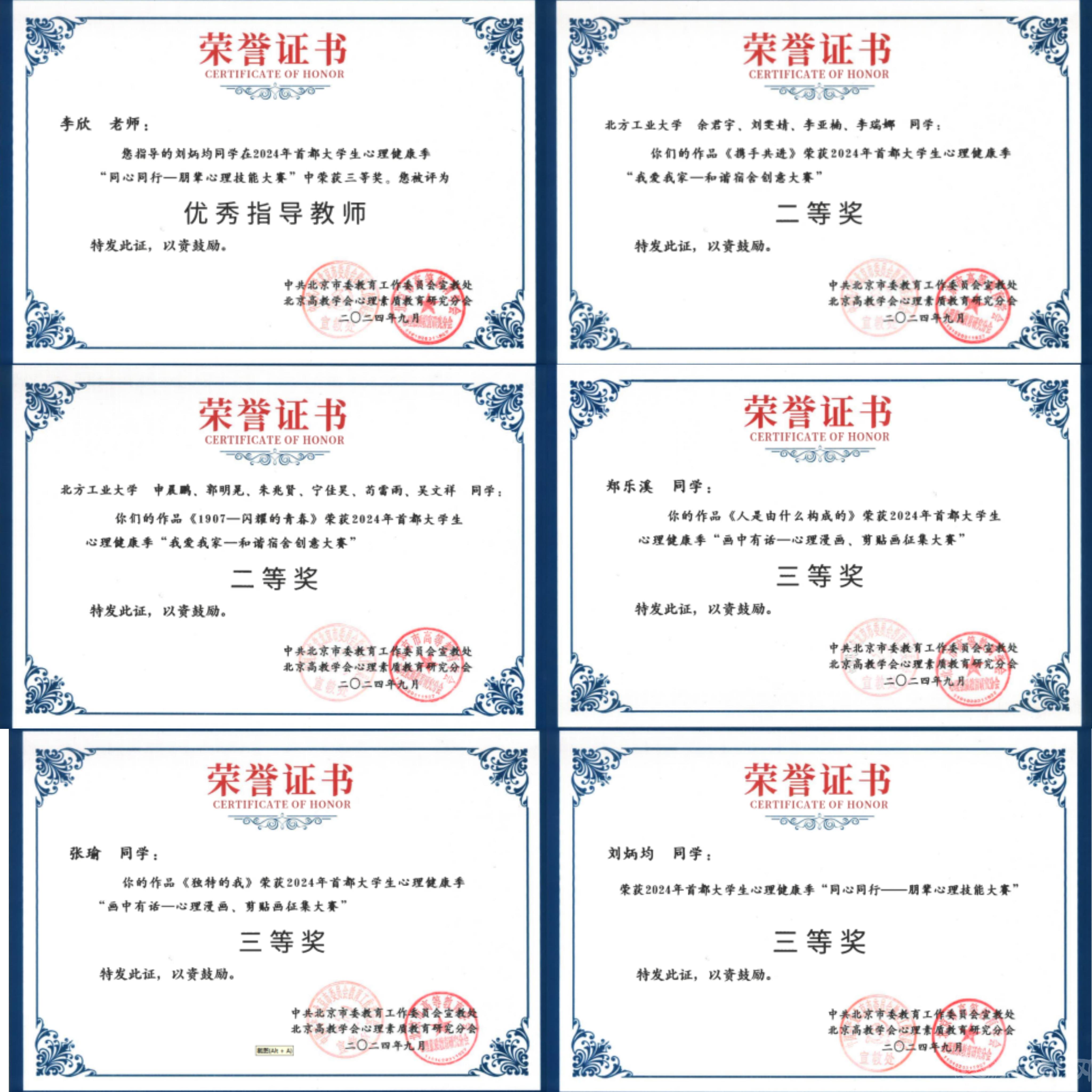 近日,由中共北京市委教育工委宣教处和心理素质教育研究分会主办的“2024年首都大学生心理健康季总结表彰会”在中国地质大学举行。beat365官网荣获“2024年首都大学生心理健康季特色活动奖”,6名师生获得单项奖。