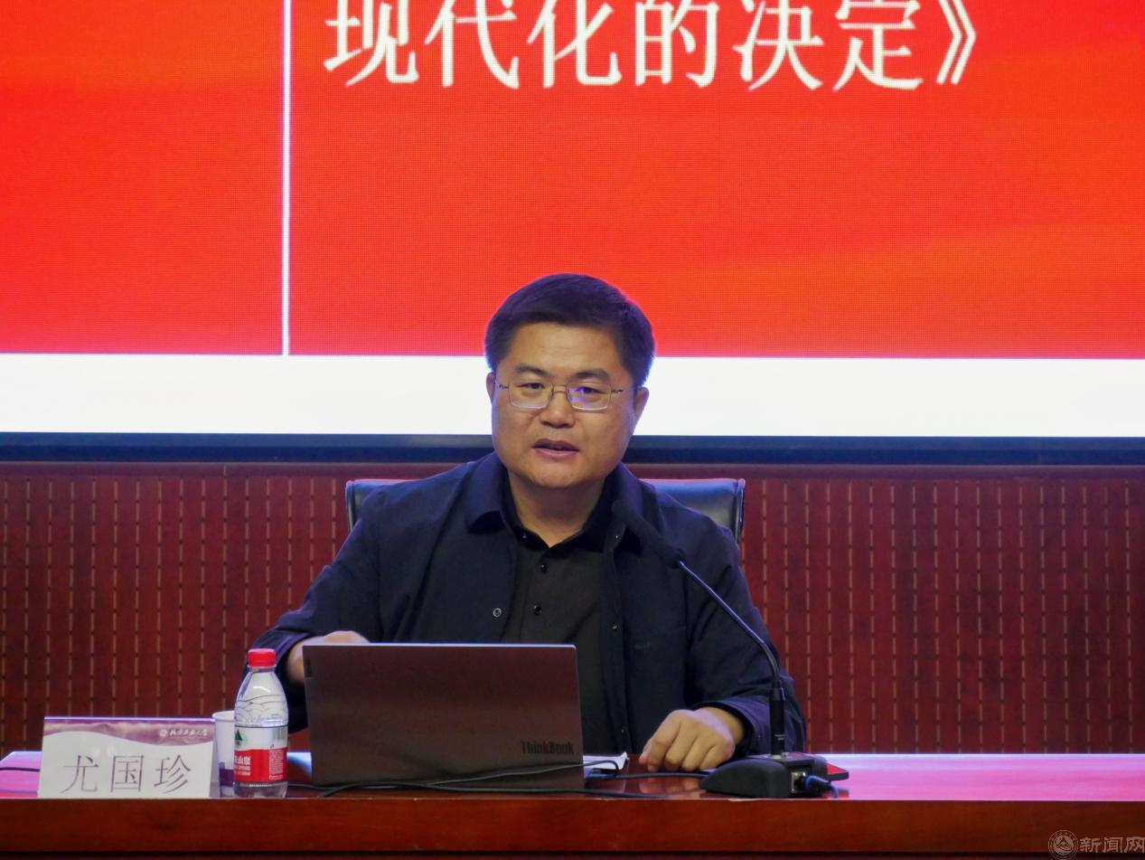 尤国珍教授以“进一步全面深化改革 推进中国式现代化建设”为主题,从深刻认识党的二十届三中全会召开的时代背景、全面准确理解《中共中央关于进一步全面深化改革、推进中国式现代化的决定》提出的重大举措、深入学习贯彻习近平总书记重要讲话精神等方面作了深入的宣讲辅导。报告既有政治理论高度,又有现实关照,对于广大师生深刻领会和把握党的二十届三中全会精神,以更加积极的姿态融入学校事业发展具有重要的指导意义。