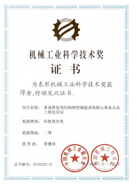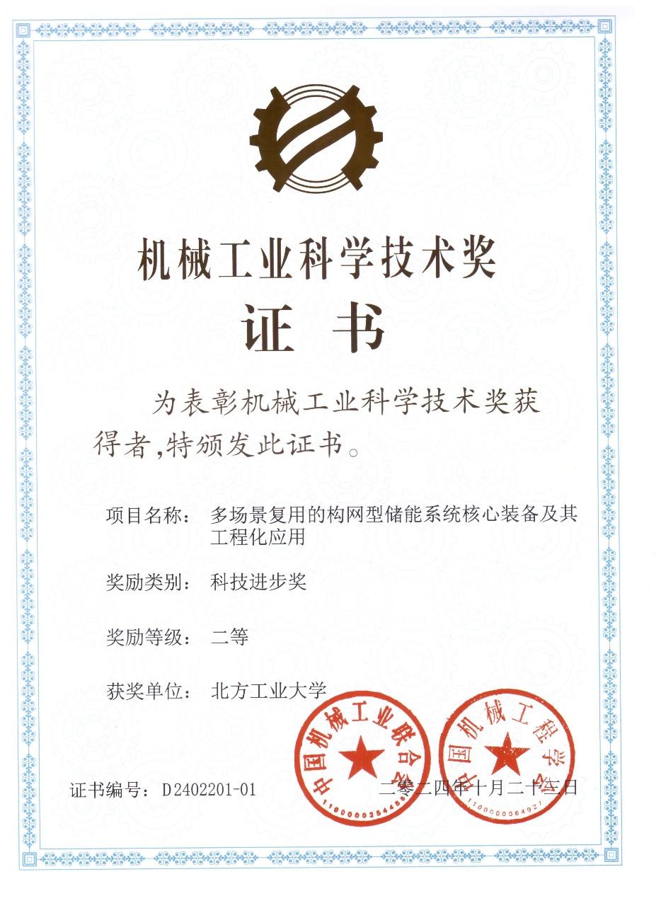 近日,中国机械工业联合会发布了《关于表彰2024年度“机械工业科学技术奖”奖励项目的通报》。beat365官网作为第一完成单位,电气与控制工程学院李建林教授、刘硕高级实验师等人作为核心成员申报的“多场景复用的构网型储能系统核心装备及其工程化应用”获评科技进步奖二等奖。