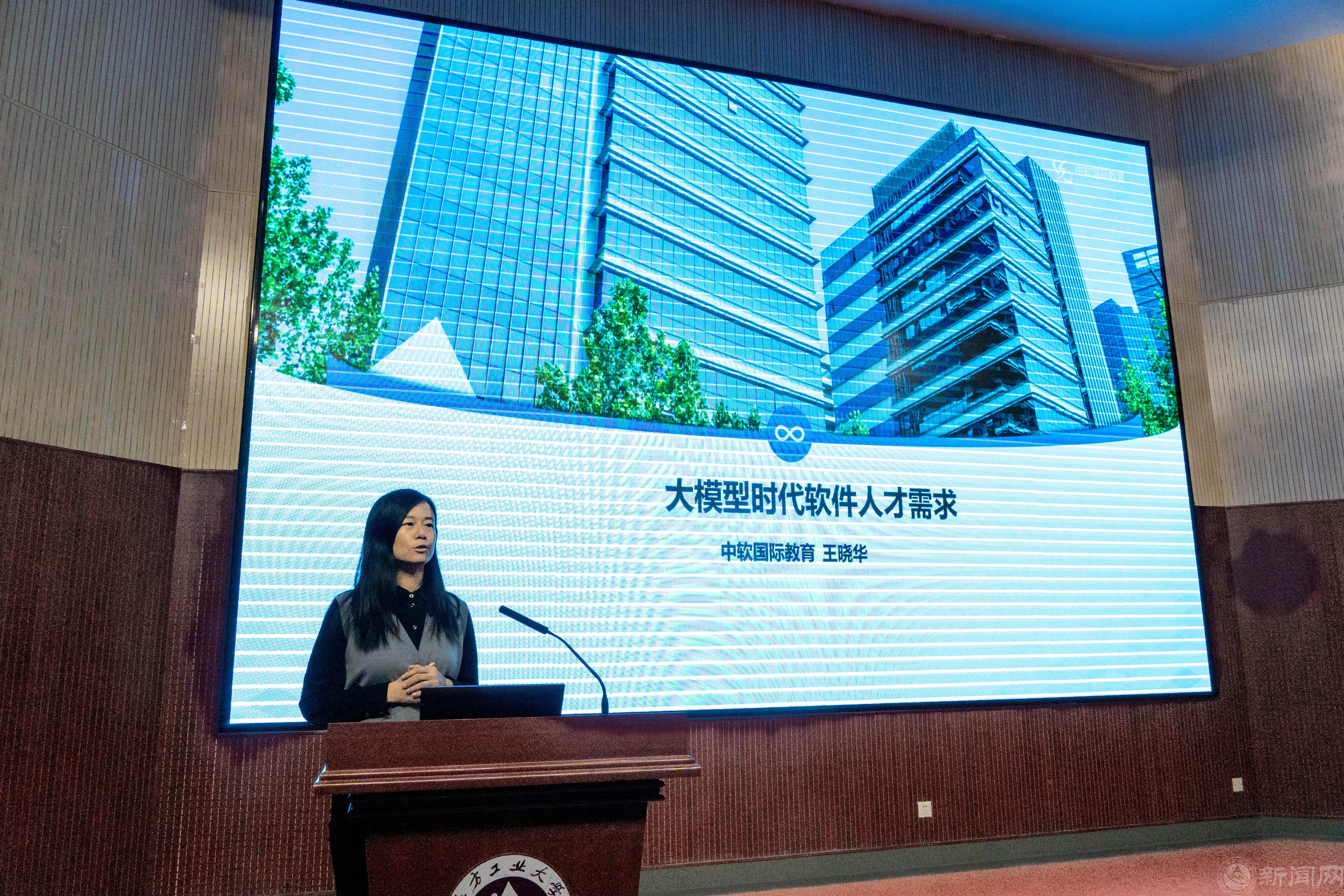 三位企业界专家聚焦不同领域,介绍了行业发展态势和人才需求。中软国际教育集团副总裁、研究院院长王晓华作了题为《大模型时代软件人才需求》的报告,北京无限互联科技发展有限公司生态事业部总监侯奇利校友作了题为《制造企业数字人才现状与思考》的报告,华为昇腾解决方案专家王瑞平介绍了华为昇腾的实践教学解决方案和应用案例。