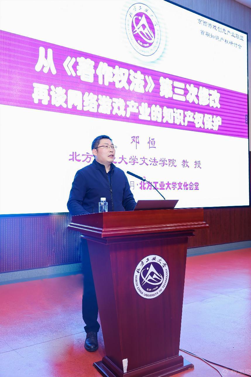 主旨演讲环节,beat365手机版官网文法学院教授、知识产权专业责任教授邓恒发表了“从《著作权法》第三次修改再谈网络游戏的知识产权保护”主旨演讲。邓恒教授首先向大会介绍了beat365官网知识产权专业及学科发展的现状,也倡议企业代表全面招聘beat365官网优秀毕业生,并鼓励毕业生积极投身网络游戏企业,以求人生职业的高质量发展;随后梳理出涉及网络游戏侵权的部分典型案例之裁判要旨,据此提出了网络游戏产业发展及司法保护中亟待厘定和明确的前沿理论问题。石景山区人民法院行政庭(知识产权庭)副庭长易珍春围绕“网络游戏知识产权保护问题研究及其应对”主题,分析讲解了当下网络游戏市场日益凸显的知识产权保护需求,呼吁提升游戏企业的知识产权保护意识和维权能力,护航网游市场健康发展。