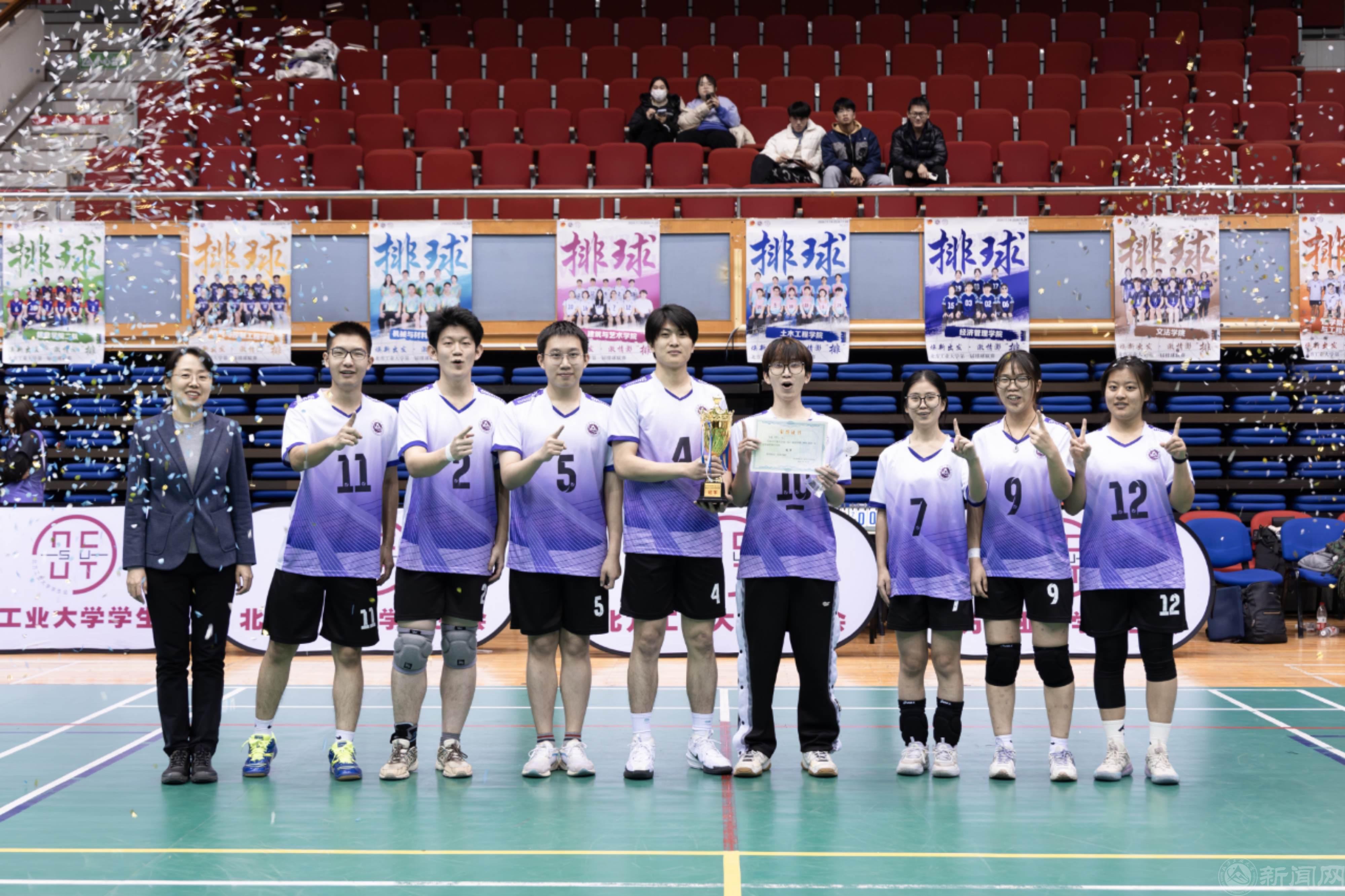 11月28日晚,伴着夺冠队伍的欢呼声,历时两周的2024-2025学年“焕新出发,激情澎‘排’”排球联赛在体育馆圆满落幕。校团委负责人、各学院团委书记、赛事指导教师、校学生会志愿者以及400余名师生共同观看了决赛。国家一级裁判员崔玉诺、校排球队队员杨涛和郑彤受邀担任本次决赛裁判。