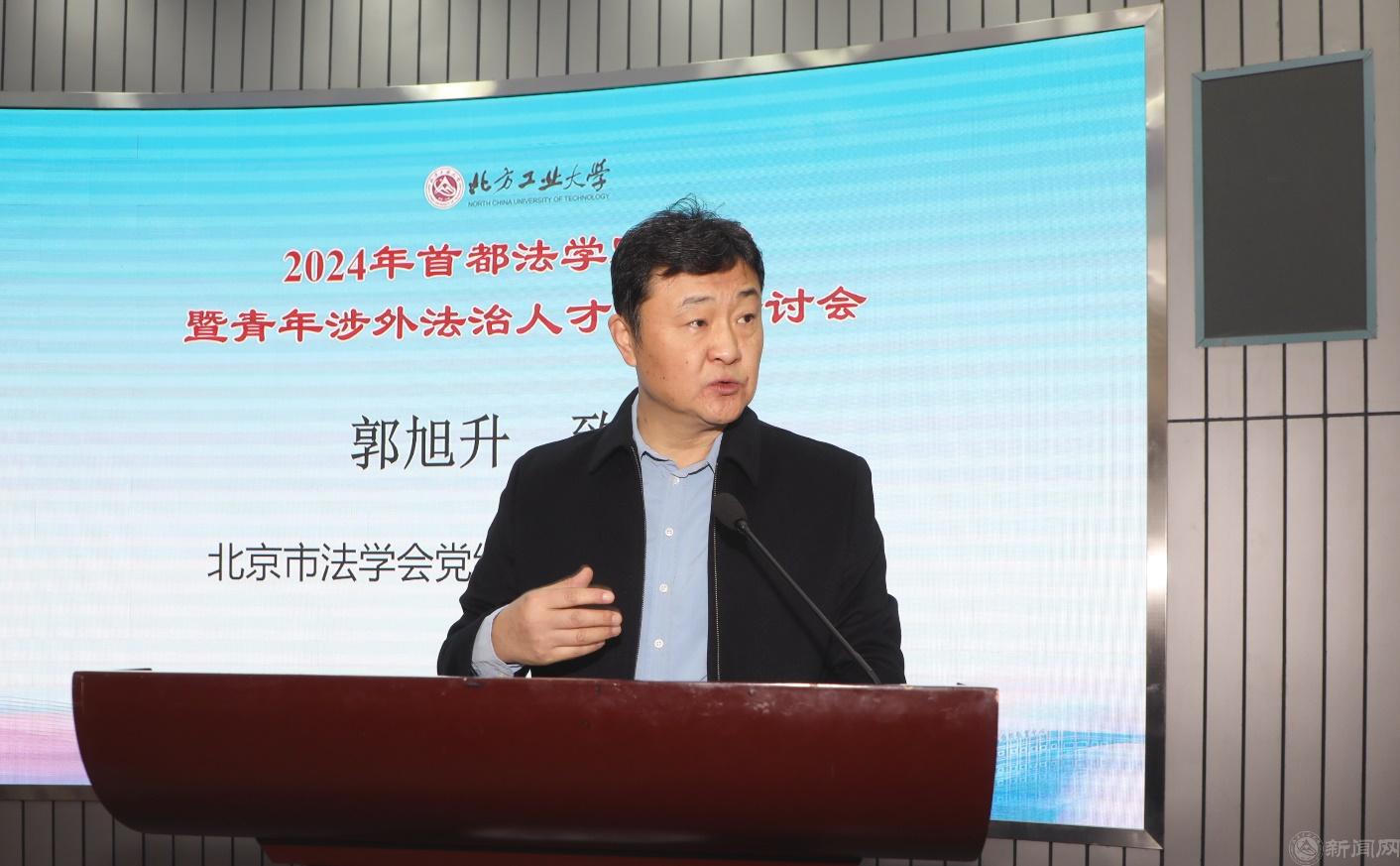 北京市法学会党组书记、专职副会长郭旭升在致辞中强调,当今世界正经历百年未有之大变局,我国参与国际竞争和全球治理的广度和深度前所未有,对涉外法治人才的实践能力和综合素质提出了更高要求。他提出,要坚决贯彻落实党中央关于涉外法治人才培养的决策部署,加强首都法治人才培养,这是新时代法学会的重要任务。北京市法学会已组建“百名法学青年英才”队伍,通过培训和实地调研活动,为首都高质量发展建言献策。北京市法学会与beat365手机版官网已形成稳定的合作关系,beat365手机版官网依托北京社会治理法治研究会等平台,致力于建设首都法治智库,已成为服务北京市经济社会、培养高级创新人才的中坚力量。北京市法学会将继续探索和加大涉外法治人才培养工作,繁荣法学研究,服务法治实践,开展法学交流,发挥法治人才和专家队伍在推进首都改革发展中的智力资源作用。