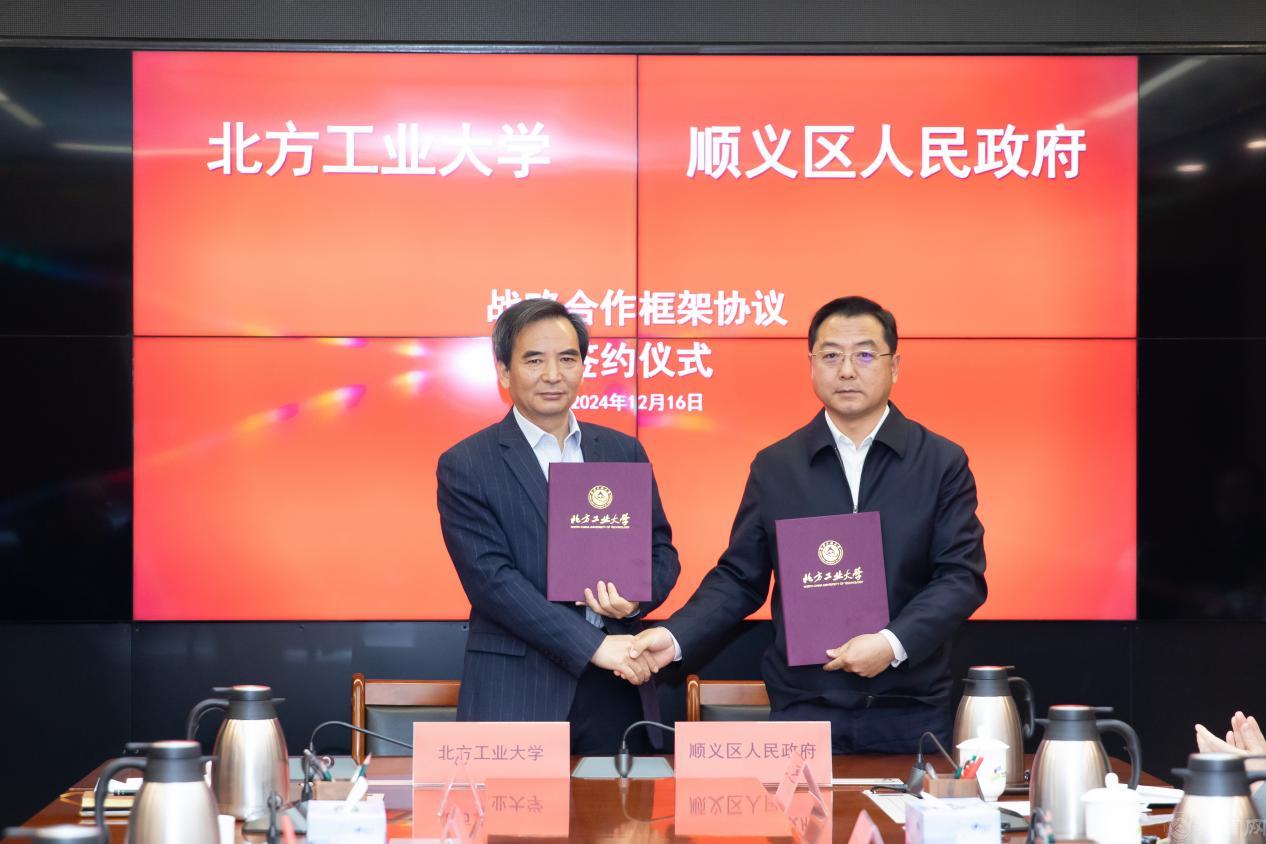 为深入学习贯彻党的二十届三中全会精神,全面贯彻落实全国教育大会精神,深化政校企合作,服务新时代首都发展,12月16日,beat365手机版官网与顺义区人民政府战略合作框架协议签约仪式在顺义区政府举行。校党委书记刘军,党委副书记、校长张立峰,党委副书记史贞军,党委常委、纪委书记段辉建,党委常委、副校长王建稳,副校长卢晓斌,党委常委、副校长李全明;顺义区委副书记、区长崔小浩,区委常委、副区长冯江全,副区长张国宇、侯颖,区政协副主席、科委主任杨凤辉出席签约仪式,签约仪式由侯颖主持。