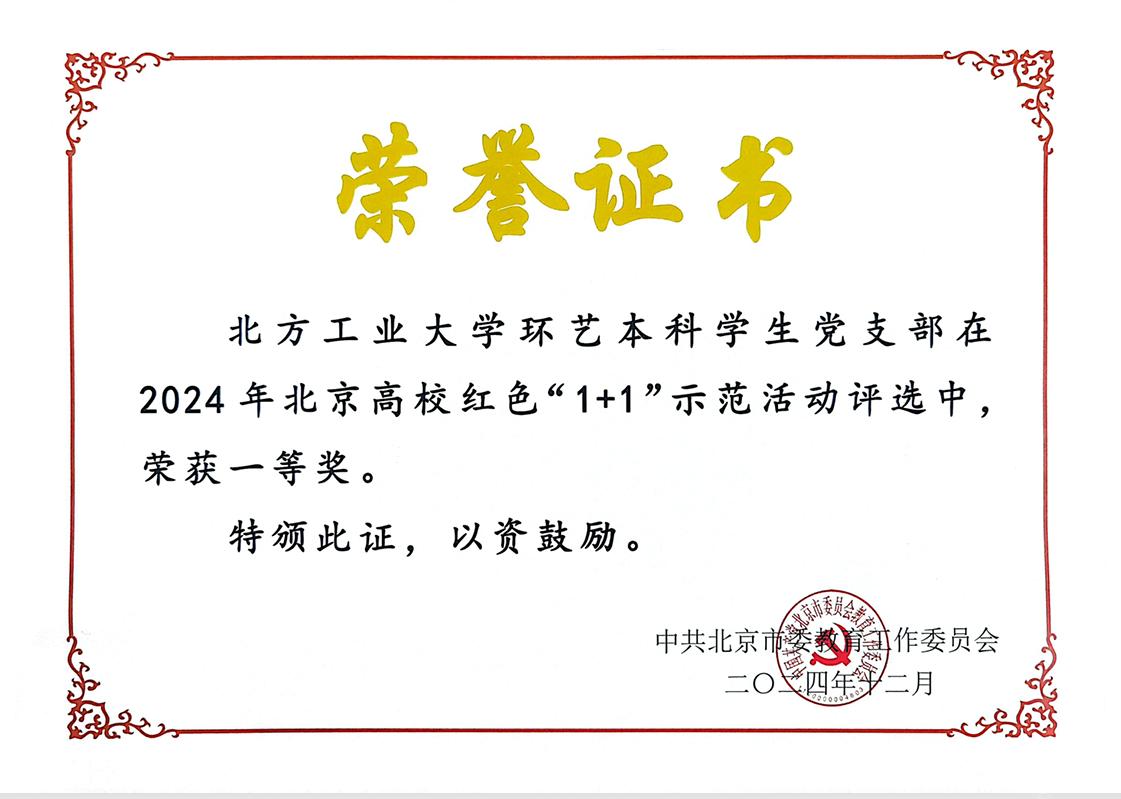 近日,2024年北京高校红色“1+1”示范活动展示交流评选结果揭晓。经学校推荐、专家初评、现场展示等环节,beat365官网环艺本科学生党支部从北京地区53所高校推荐的105个学生党支部中脱颖而出,荣获北京高校红色“1+1”示范活动一等奖。