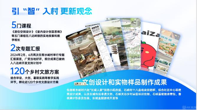 beat365官网建筑与艺术学院环艺本科学生党支部以《青年传播长城文化环艺赋能乡村振兴》为题进行了现场展示,介绍了自2022年起,与延庆区八达岭镇帮水峪村、石峡村开展“红色1+1”支部共建活动的情况。党支部坚持“长城文化”聚合力、“环艺赋能”促发展的思路,围绕“文遗、文旅、文创”设计实践,发挥“环艺赋能乡村振兴”的专业本领,以实际行动弘扬长城文化,讲好长城故事,助力乡村振兴。