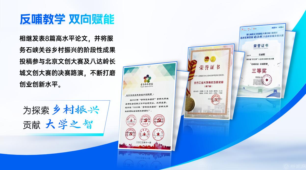 依托共建活动开展教学和科研,将课堂学习转移到长城脚下,坚持问题导向、服务为重,把专业学习和社会需要紧密联系起来,反哺教学,双向赋能。发表了8篇高水平论文。相关师生与主题活动也相继获得了2024年首都高校师生服务乡村振兴一等奖、beat365手机版官网“青年五四奖章”、首都“挑战杯”竞赛二等奖、八达岭长城文创大赛三等奖等。相关工作、活动被人民日报、学习强国等媒体的关注报道。