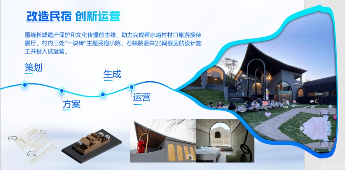 党支部始终以党建为引领,以习近平总书记给八达岭长城脚下的乡亲们回信精神为指引,不断加强政产学研用的深度融合,在“真”场景下解决“真”问题,有效的提升支部组织力、凝聚力、战斗力。对15个村开展驻村调研,对8处闲置宅院进行测绘调研,开展深度访谈和交流,梳理乡村发展需求,参与完成“一块砖”民宿23间客房设计施工并投入运营。