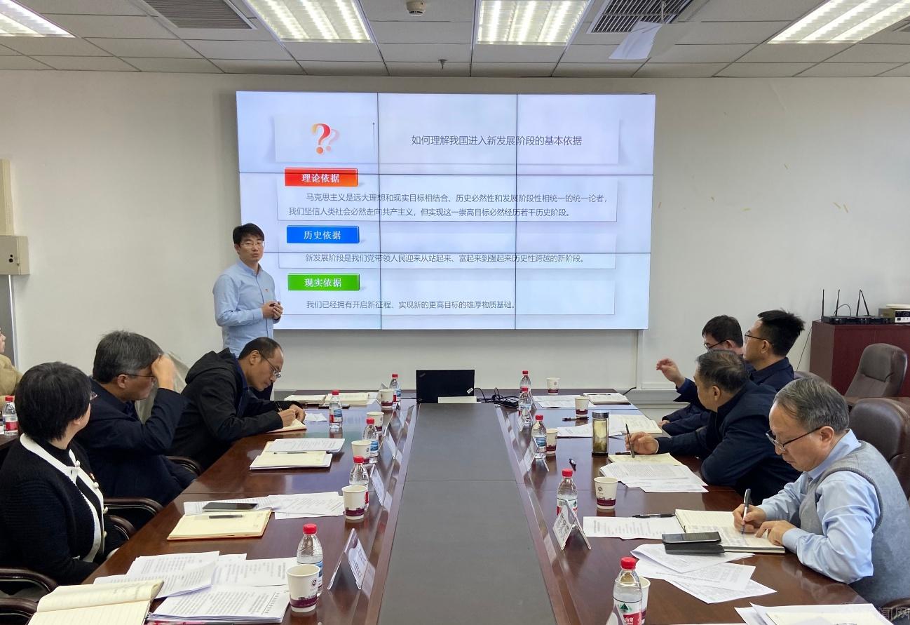 备课会上,张茂林系统汇报了《习近平新时代中国特色社会主义思想概论》课程的建设情况,重点介绍了课程内容设置、学分安排与教学实施进展。教师第一党支部书记宋天博围绕习近平经济思想相关知识点,以《以新发展理念引领高质量发展》为主题进行说课。交流研讨环节,师生代表结合自身教学体验和学习体会分享了认知,提出了建议。与会教师一致认为,要严守课堂纪律,弘扬主旋律,更好的推动党的创新理论入脑入心。