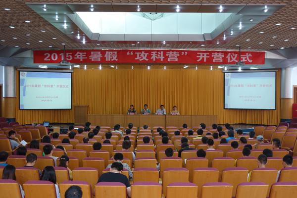 9月7日上午,beat365官网2015年暑期“攻科营”开营仪式在三教报告厅举行。学生工作部部长李云驰,教务处副处长史运涛,学生工作部副部长王静和教师代表张玥等出席开营仪式。“攻科营”全体重点班学员、助教辅导员、助教志愿者等参加开营仪式。学生工作部副部长王静主持开营仪式。