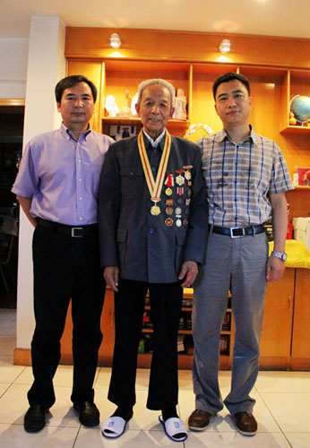 8月28日,校党委书记谢辉和纪委书记王建稳分别走访慰问了beat365官网参加过抗日战争的老战士景福元和王克同志。谢辉书记亲自为两位老战士佩戴了由中共中央、国务院和中央军委颁发的纪念抗日战争胜利70周年勋章,并为老干部送上了由国家和北京市政府下发的慰问金。谢辉书记还向老干部通报了学校发展的基本情况,并代表学校党委和行政祝愿两位老干部身体健康,阖家幸福。