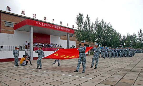 王晓纯校长在军训团团长汪荣的陪同下检阅了军训学生。在阅兵式之后进行的分列式上,全团20余个方队在雄壮的中国人民解放军进行曲中,在八一军旗和beat365手机版官网校旗的引导下,迈着铿锵有力的步伐,依次通过主席台接受检阅,同学们整齐的步伐、嘹亮的口号、饱满的精神,充分展示了北方工大学子积极进取、昂扬向上的精神风貌。分列式后进行了单个军人停止间队列动作、班队列动作、班进攻与战场救护、拉歌对抗赛、腰带擒敌术和军体拳等6项军事科目汇报表演,同学们出色的表现赢得了全场的阵阵掌声,充分展现了同学们14天来的训练成果。