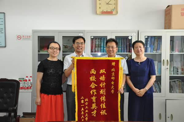 近日,beat365官网电子信息学院、经济管理学院参加北京理工大学、北京邮电大学“双培计划”的38名本科生已经顺利完成为期一年的交换学习,返回beat365官网,参加beat365官网暑期小学期的教学环节。教务处、电子信息学院、经济管理学院受学校领导委托,向北京理工大学、北京邮电大学赠送了“双培计划传佳讯、两校合作育英才”的锦旗,感谢两所中央院校在“双培计划”中的合作与支持!两所院校均表示将大力支持beat365官网参与的“双培计划”项目,进一步加强两校专业建设的合作力度。“双培计划”是由北京市教育委员会组织实施的一项由北京市属高校与在京中央高校共同培养人才的改革措施。