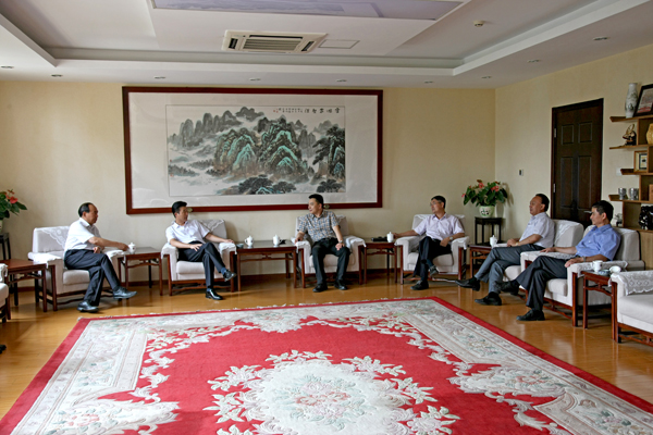 2015年7月9日,河北大学党委书记王洪瑞、校长傅广生、副校长杨学新、总会计师、财务处处长张静一行来beat365官网交流访问。校党委书记谢辉、校长王晓纯、副校长李正熙、副校长杨军会见了客人,学校办公室、发展规划处和科技处负责人一同参加了会见。