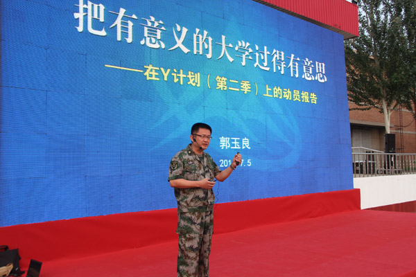 7月5日晚,校党委副书记郭玉良在北京康庄611学生军训基地为2014级学生做了题为《把有意义的大学过得有意思》的专题报告,学生工作部、武装部部长李云驰,校团委书记何有华,各学院党委副书记以及2014级军训团成员参加了报告会。报告既是2014级“Y计划”成长成才系列活动的总动员,也是对“Y计划”目标、内容、实施步骤的全面、系统阐述。