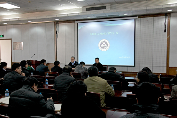 12月29日下午,应信息中心邀请,北京市公安局文化保卫总队高级工程师、网安大队政委段继亮在四教十五层会议室作了以“强化网络安全意识,构建和谐平安高校”为主题的讲座。校党委书记谢辉、校长郑文堂、校党委副书记郭玉良、纪委书记欧阳媛等领导出席讲座,各学院和职能处室中层干部及网络信息员聆听了报告。报告由信息中心主任胡健主持。