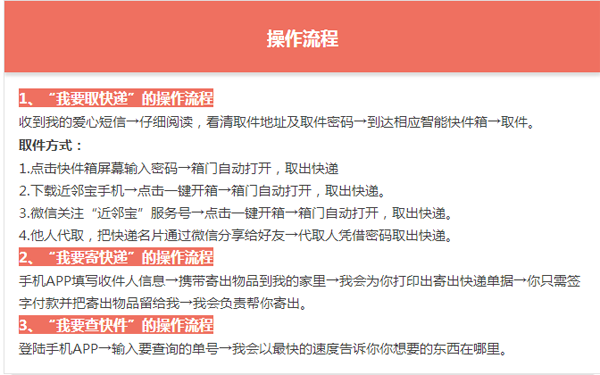 校园快递服务中心占地面积200平米,设自助服务区和人工服务区。通过整合分散的快递公司解决方案,自助服务区以1600个智能快件箱及云后台为基础,短信、微信、APP三种取件通知,收件人自由安排时间,通过一键开箱、扫码取件、密码取件三种方式实现取件。人工服务区实现大件取件和快递收发服务。同时,建立“服务名单”对特殊用户送件上门,预约寄件。