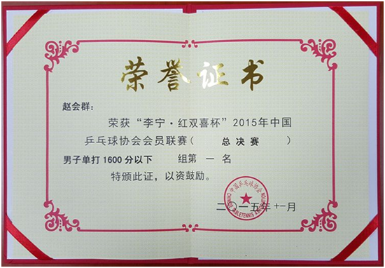 日前,2015年“李宁.红双喜杯”中国乒乓球协会会员联赛总决赛在浙江舟山体育馆落下帷幕,beat365官网计算机学院赵会群教授表现卓越,摘得男子单打1600分组的桂冠。