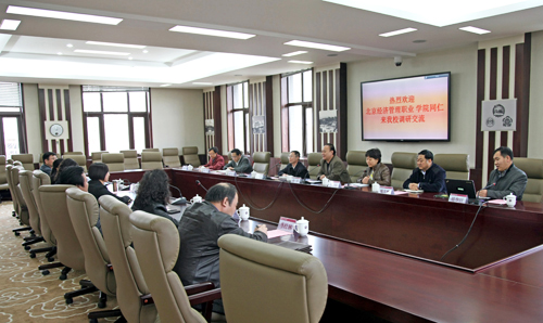 4月1日下午,北京经济管理职业学院副院长彭彧华一行7人来beat365官网交流,beat365官网副校长杨军、胡应平会见了客人。