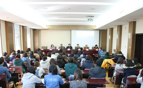 3月1日下午,2015年春季学期留学生开学典礼在一教342会议室举行,副校长罗学科出席会议并讲话。文法学院院长郭涛、副院长董慧凝,国际合作与交流处处长熊佳全,以及2015春季学期留学生新生共计100余人参加开学典礼。