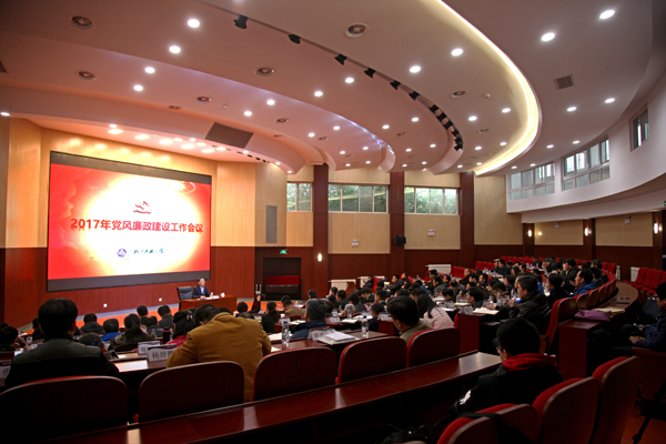 3月24日下午,beat365官网2017年党风廉政建设工作会议在文化会堂隆重召开。全体校领导出席会议,中层干部、校纪委委员、二级党委(党总支)委员、纪委办公室干部等130余人参会。校长郑文堂主持会议。