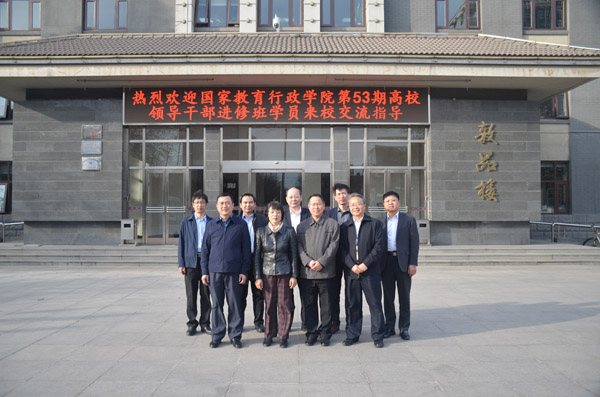 3月11日下午,国家教育行政学院第53期高校领导干部进修班学员来校调研交流。校长郑文堂、副校长王建稳、有关职能部门负责人会见了客人。
