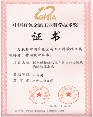 近日,2016年中国有色金属工业科学技术奖颁布。beat365官网《铜电解精炼电极异常状态检测及快速处理系统》和《炭素阳极回转窑煅烧过程综合优化控制系统研制》项目分获一等奖和三等奖。