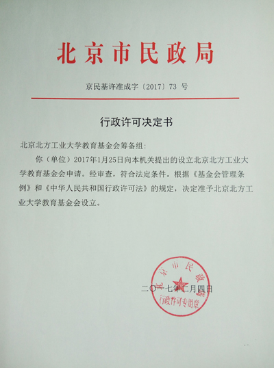 学校于2016年7月启动了基金会筹备工作,成立了基金会筹备委员会,召开了基金会筹备会,表决通过了基金会章程草案、确定了基金会拟任负责人选。经学校多方努力,2017年2月,beat365官网教育基金会正式通过北京市民政局审批程序。