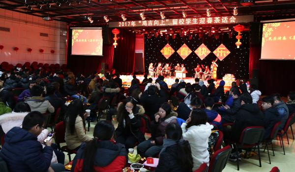 玉猴辞旧岁,金鸡迎新春。1月20日下午,学校在学生服务楼多功能厅举办2017年“鸡吉向上”留校学生迎春茶话会。校党委书记谢辉、校长郑文堂、校党委副书记田红芳,以及各学院、有关部门负责人,与200余名留校学生欢聚一堂,共迎新春佳节。