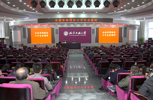 12月28日下午,学校在广学楼报告厅举办学习贯彻党的十八届六中全会精神宣讲会,邀请中共北京市委党校常务副校长王民忠作题为《全面准确领会六中全会精神》的辅导报告。校级党委中心组成员、中层干部、系主任及骨干教师代表,民主党派负责人及党外知识分子代表,研工、学工干部参加了学习。宣讲会由党委副书记郭玉良主持。