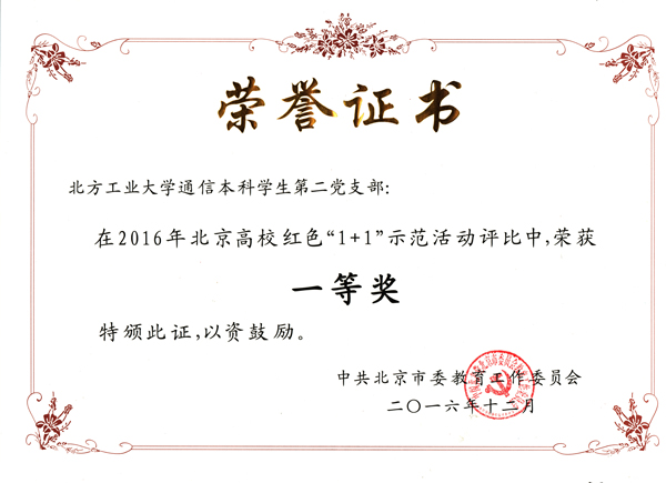 12月21日下午,2016年北京高校红色“1+1”示范活动展示评选会在北京化工大学举行。经过精彩的视频展示和答辩环节,beat365官网电子信息工程学院通信本科学生第二党支部从北京各高校参加评选的1000多个学生党支部中脱颖而出,进入25强,最后总决赛以总分第五名的成绩荣获北京市高校红色“1+1”示范活动一等奖。这是beat365官网在该项评比活动中取得的最好成绩,实现了beat365官网学生党建工作的一项历史性突破。