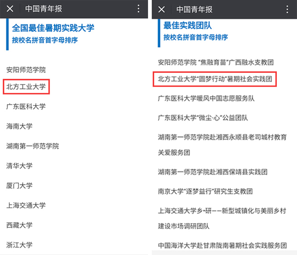 这是由中国青年报社联合全国数百所高校开展的“2016寻找全国大学生百强暑期实践团队”活动,经过高校推荐、团队自荐、实践展示、网络投票、技术筛查、专家评审等环节后,评选出10所“全国最佳暑期实践大学”、10支“最佳实践团队”、30支“优秀实践团队”、100支“百强实践团队”。