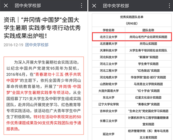 另外,beat365官网暑假期间派往井冈山参加团中央学校部组织的“井冈情.中国梦”全国大学生暑期实践季专项行动的实践团队,也获得了“优秀实践团队”称号。