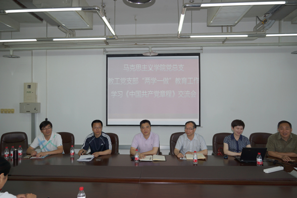 谢辉书记从全面从严治党的战略意义出发,与支部成员交流了自己对“两学一做”学习教育的心得体会,并结合实际对思想政治课教师党员提出四点要求:一是要做到真学真信,在真正把握马克思主义理论实质的基础上,树立坚定的马克思主义信仰。二是在日常工作和生活中,要以党员的标准严格要求自己,在关键时刻能够真正发挥党员作用,敢于迎难而上。三是要将“两学一做”与自身业务相结合,从培养社会主义接班人的高度,从学生实际出发来思考问题。四是要真正将“两学一做”落实到行动中,与学院、学校的发展密切结合起来。提高党员自身的使命感与担当意识,抓住“十三五”的战略发展机遇,为学校的发展做贡献。